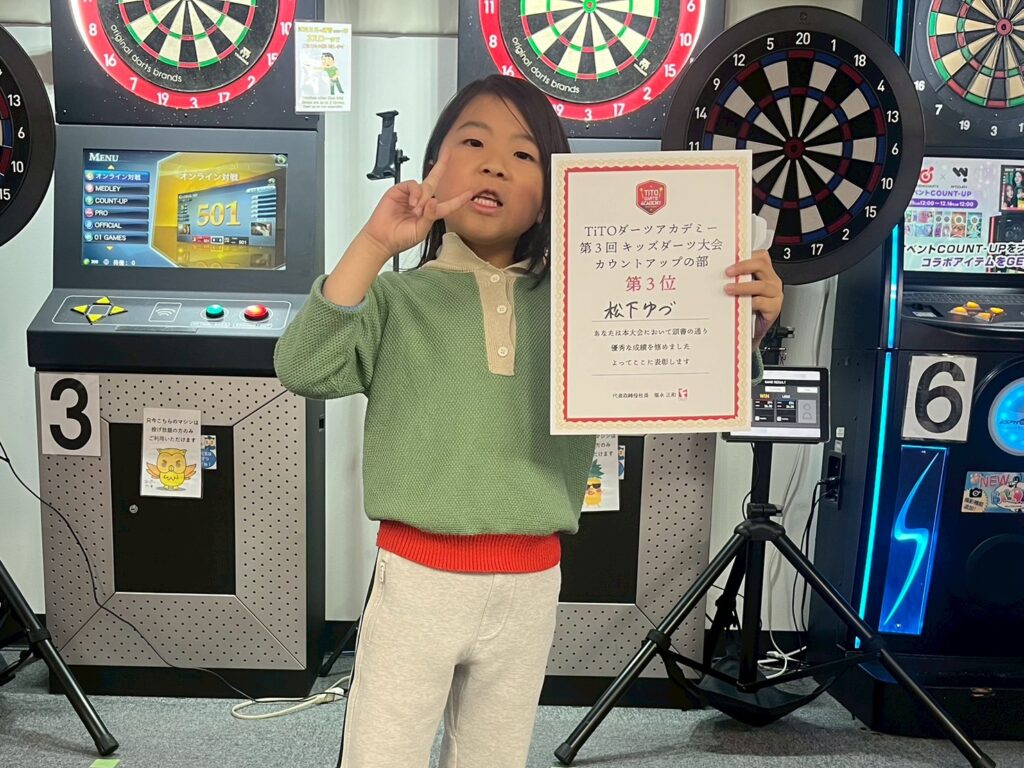 子供たちに更なるダーツの楽しさを知ってもらうため、ダーツショップTiTO福岡店にて第3回目となるキッズダーツ大会を開催しました。カウントアップの部の開催、ゼロワンの部は参加者の関係でレクチャー会に変更して開催しました。