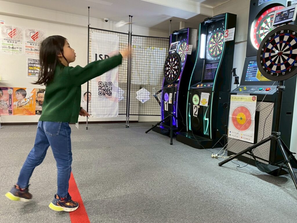 第1部はとにかくダーツを楽しく投げてもらいました。2部とは違い、細かなレクチャーなどせずにダーツに触れて、ダーツの楽しさを実際に知ってもらうコース内容となっています。高さを133cmに設定したダーツボードを準備しているので、未就学のお子様でも身長を気にすることなく、本格的なソフトダーツを楽しんでいただけました。