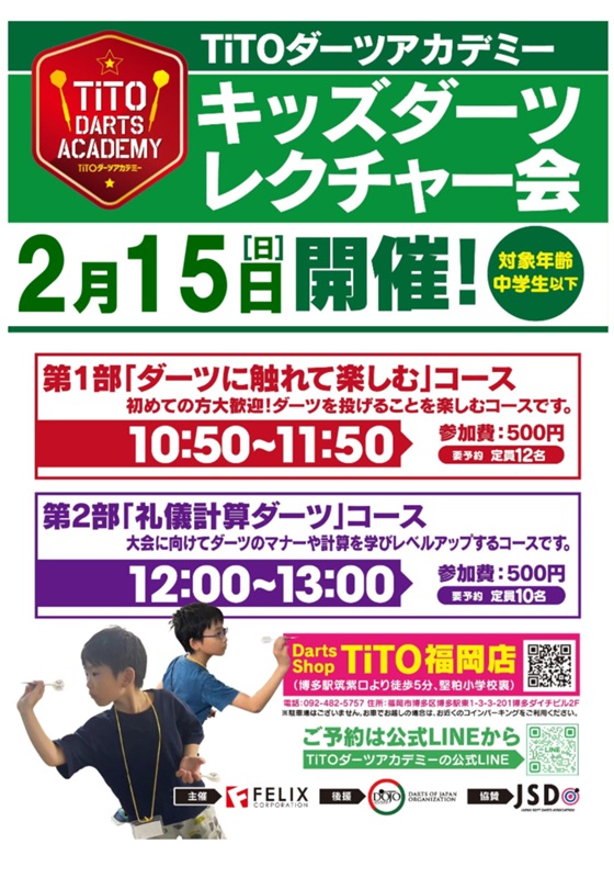 2026年2月15日(日)に、次世代を担う子供たちにダーツの楽しさを体感してもらえるよう、ダーツレクチャー会を開催いたします。