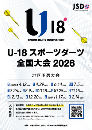 JSD主催により、18歳以下のダーツ技術の向上と健全な心身の育成を図るとともに、スポーツダーツの普及と発展を目的として実施します。